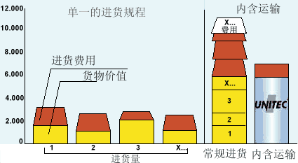 逻辑 快速的经济上的成果和极大的管理费用的降低的解决办法的简单逻辑是可以用图形来表达的。 越多的使用内含运输方法来挂管理,盈利就越多。 这个逻辑的使用会把费用转变成资源