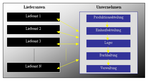 Auf der Angebotsseite stehen die Lieferanten, die das für einen geregelten Geschäftsablauf des Unternehmens notwendige