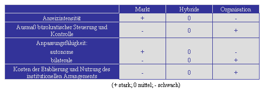 Zusammenfassend ergibt sich in Hinblick auf die Transaktionscharakteristika der drei grundlegenden alternativen