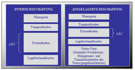 Deshalb wird in dieser Arbeit die unternehmensinterne mit der ausgelagerten Beschaffung anhand der Summe der gesamten Kosten