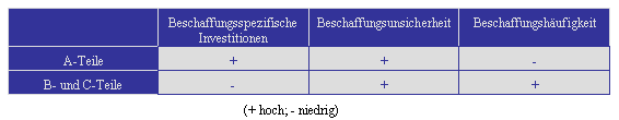 Die B- und C-Teile besitzen hingegen niedrige Einkaufspreise und haben am gesamten Einkaufsvolumen nur 20% Anteil.102
