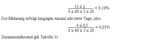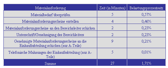 In the following table the activity times are alike, but sink the frequency of sending authorized the material requirement light away and the telephone reminder of the purchase department on in each case 6,6 and 0,4-mal on the day, since they concern only the A-parts.