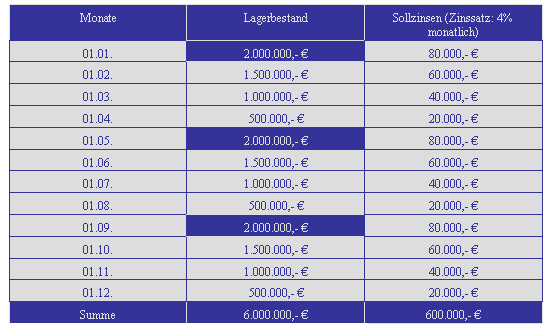 The stock amounts to thus only 500.000€ per month. Therefore twelve credits at a value of in each case 500.000€ become considered.