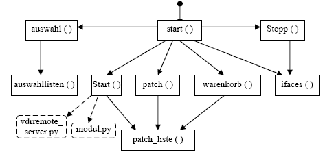 The script dvp.py builds the HTML sides up for the Web surface from the individual parts, gives it back to the Web server and starts and stops the VDR. In the source text the appropriate paths at the beginning are defined.