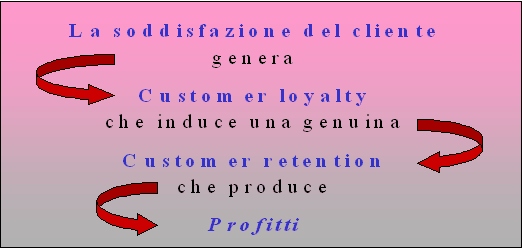 When the customer perceives a high level of accumulated satisfaction, she becomes stablily faithful, therefore loyal. The customer loyalty it is, in fact, definable like the intention or the predisposition of the customer to acquire a prodotto/servizio, provoked from the positive impression that the company has provoked in the previous relations.