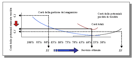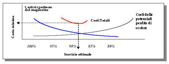 merce richiesta dal mercato (optimal service). Nel grafico sono rappresentate la curva del costo di gestione del magazzino