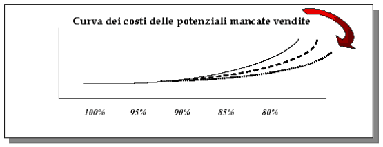 potenziale perdita di ordini (potential lost sales costs), la quale ha un andamento opposto rispetto alla curva precedente.