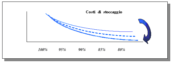 La diminuzione delle scorte fa sì che gli stessi costi di immagazzinamento (affitto locali, costi energetici, sicurezza) possono