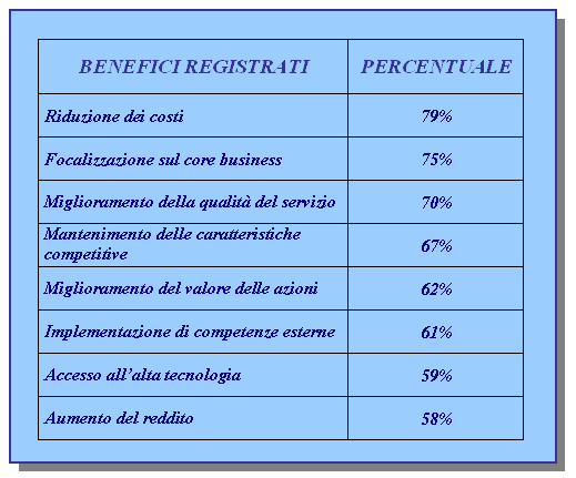 i vantaggi ottenibili sono ampiamente premianti. Una volta che si sia accettata l'idea di esternalizzare la maggior parte