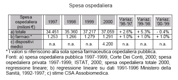 Andando ad affrontare l'argomento del magazzino ospedaliero si riportano di seguito alcuni dati indicativi delle spese ospedaliere,