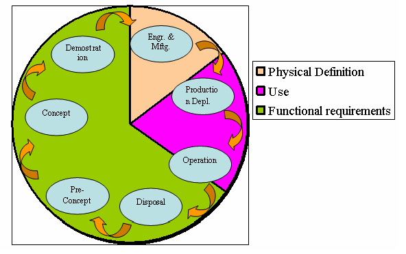 Figura 1.1: Fasi della logistica applicate al ciclo di vita di un prodotto/sistema.