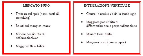 Al contrario, con le scelte di Make (figura 2), si va verso l'integrazione verticale. L'impresa adotta un'organizzazione più rigida