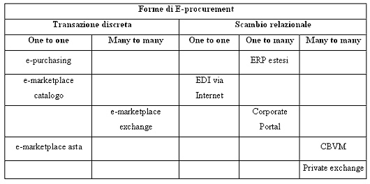 Figura 12: Classificazione delle forme di e-procurement in base alla natura del rapporto di fornitura