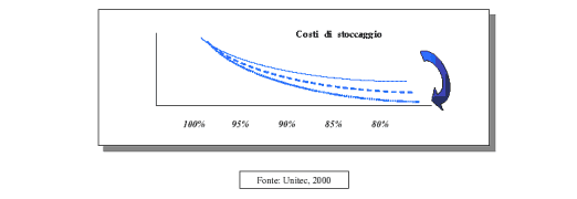 La diminuzione delle scorte fa sì che gli stessi costi di immagazzinamento (affitto locali, costi energetici, sicurezza) possono