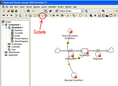 Figura 3.7- C'è una dilazione di tempo coinvolta quando si producono beni per l'inventario. Questa durata è modellata come una costante chiamata 'Time to Correct Inventory', ed è collegata alla ' Produzione'