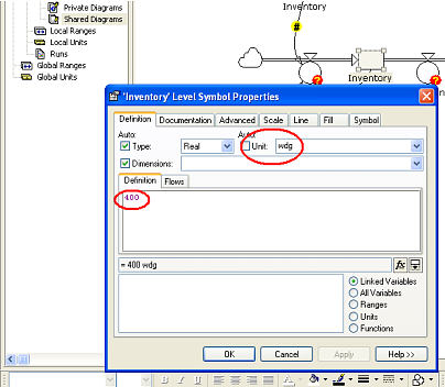 Quindi, all'inizio della simulazione, in cui ogni cosa è stabile si può settare il suo valore pari a quello dell'inventario