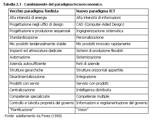 2.1 Le caratteristiche del nuovo paradigma tecnoeconomico