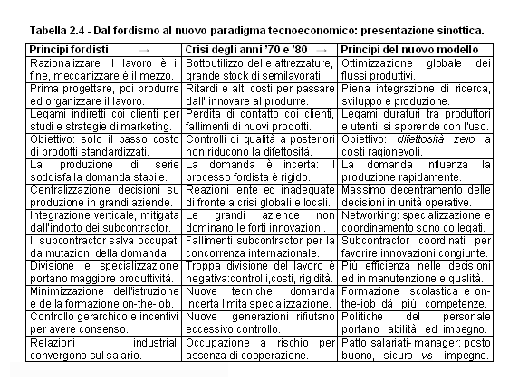 La tabella 2.4 rileva che l'incompatibilità nelle specializzazioni della forza lavoro proviene dai mutamenti nella composizione