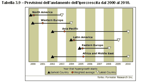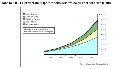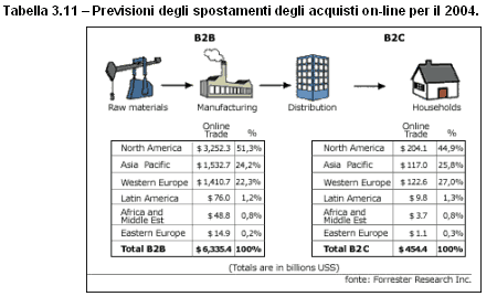 Nella figura 3.11, viene illustrato come probabilmente i consumatori sposteranno i loro acquisti on-line all'interno del B2C e del B2B, entro il 2004.