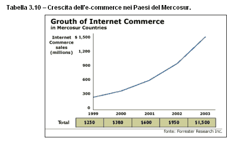 Uno dei mercati più promettenti per il settore è l'America Latina: a riguardo il grafico seguente (tabella 3.10)