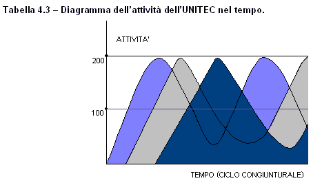 Questo diagramma mostra come l'outsourcer, l'UNITEC, è sottoposto in misura minore rispetto ai clienti alle variazioni
