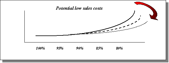 Fig. 2.5 : L'appiattimento della curva dei costi delle potenziali perdite di vendite. [Unitec GmbH, 2000]