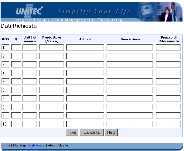 Fig. 3.11 : Pagina di accesso per emettere una richiesta di fornitura. [Unitec GmbH, 2001]