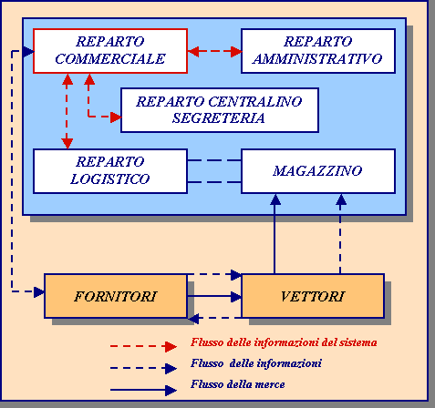 Oltre ad interagire con i fornitori, si è infatti visto che nello svolgere le proprie funzioni il reparto commerciale instaura forti correlazioni operative con il reparto logistico (nel caso si verifichino problemi nella consegna), con il reparto amministrativo (in special modo per qual che riguarda le fatturazioni errate da parte dei fornitori, e gli avvisi che vengono mandati per problemi di ritardo di consegna o di conformità delle merci), e anche con il reparto centralino-segreteria (archiviazioni delle conferme d'ordine, scambio lettere e fax).