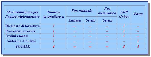 La bassa frequenza di utilizzo dei mezzi di comunicazione, la riduzione delle procedure, unitamente allo sfruttamento delle tecnologie internet, permette all'impresa "A" di limitare notevolmente i tempi da dedicare alla gestione delle forniture.