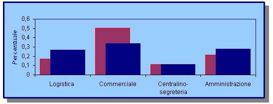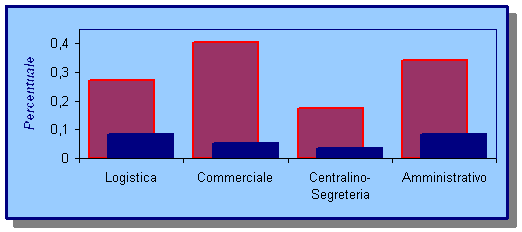 Si noterà subito che il reparto maggiormente coinvolto nei processi di approvvigionamento rimane quello commerciale; tuttavia, considerando il numero di addetti per reparto, sono i reparti logistico ed amministrativo che impiegano più tempo alla settimana in operazioni connesse alle forniture. Si tratta di un'inversione di tendenza che induce a concludere che proprio il reparto commerciale sia quello che ha trovato maggiore giovamento dall'e-procurement, permettendo un maggior risparmio di tempo.