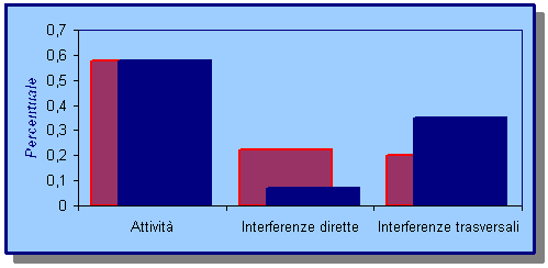 Fig. 4.56 : Con la fornitura integrata di Unitec - in blu -, le interferenze dirette si riducono più che proporzionalmente rispetto alle attività e alle interferenze trasversali.