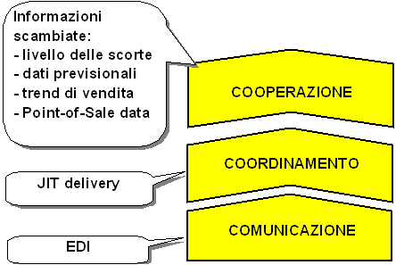 L'efficienza di questa integrazione dipenderà della capacità di assemblare insieme 3c: comunicazione, ossia condivisione dei piani, degli ordini, delle previsioni, dei livelli di capacità produttiva e di scorte; coordinamento, nel senso che quanto sopra non dovrà essere imposto dal produttore ma concordato; cooperazione, intesa come capacità di concordare obiettivi e mutui benefici.