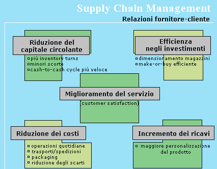 Il SCM permette di ridurre le incertezze insite nei processi di approvvigionamento, di produzione e di vendita. Ridurre le incertezze permette di ridurre: