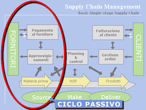 La fase di approvvigionamento rappresenta il ciclo passivo della catena e riguarda le procedure di sourcing, di ordering e di expediting delle forniture. Queste procedure presuppongono: