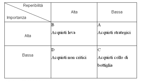Tale tabella, riportata nella Fig. 1.5 viene comunemente denominata "matrice di Kraljic" dal nome di chi l'ha