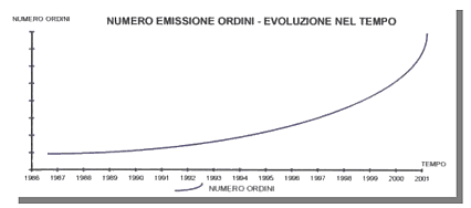 Nella Fig. 3.8 invece è indicato l'andamento del numero di emissioni di ordini, che con il passare diventano sempre più numerosi,
