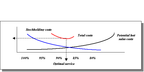 Figura 10: Rappresentazione del rapporto ottimale tra i costi di merci immagazzinate ed i costi per potenziali perdite di vendite.