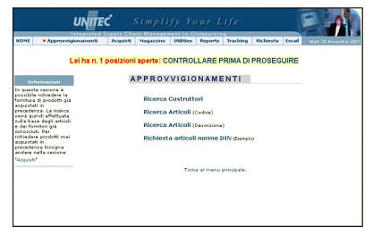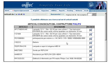 La ricerca avverrà tra gli articoli e i costruttori gia conosciuti sia dal cliente che dalla stessa Unitec.