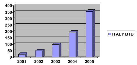 passaggio dai quasi 24 miliardi di Euro del 2001, ai quasi 360 miliardi di Euro