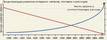 Уменьшение складских запасов, практикуемое большинством фирм, привело к фининсовым успехам, но также вызвало быстрый рост закупочного процесса, что обозначает увеличение соответствующих расходов. При одинаковых структурах нарушается уровень производительности труда отделений. Кроме того быстрое развитие и применение новых технологий принуждает к необходимости роста постащиков.